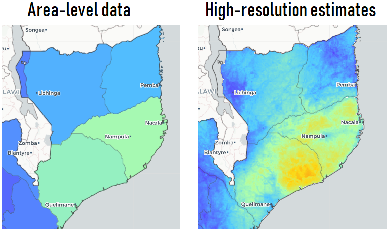 High-resolution estimates permit to find differences in disease risk within study regions, and identify areas and groups of people at higher risk