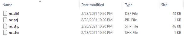 Geographic data can be represented using a data storage format called shapefile. A shapefile consists of a collection of related files:
